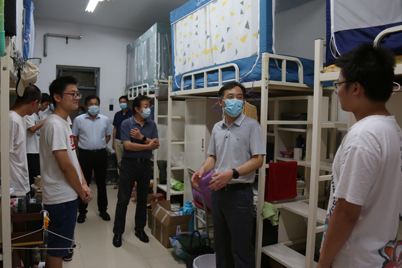 8月12日下午,校长李成伟,校党委副书记、工会主席李学雷,在校长办公室主任牛进平、学工部部长黄泽峰、后勤服务中心副主任宋文超等部门负责同志陪同下,走访莲花街校区学生公寓并慰问留校学生。电气工程学院、生物工程学院、机电工程学院等学院的主要负责同志、留校学生辅导员、学生公寓管理员等一同参加走访慰问。