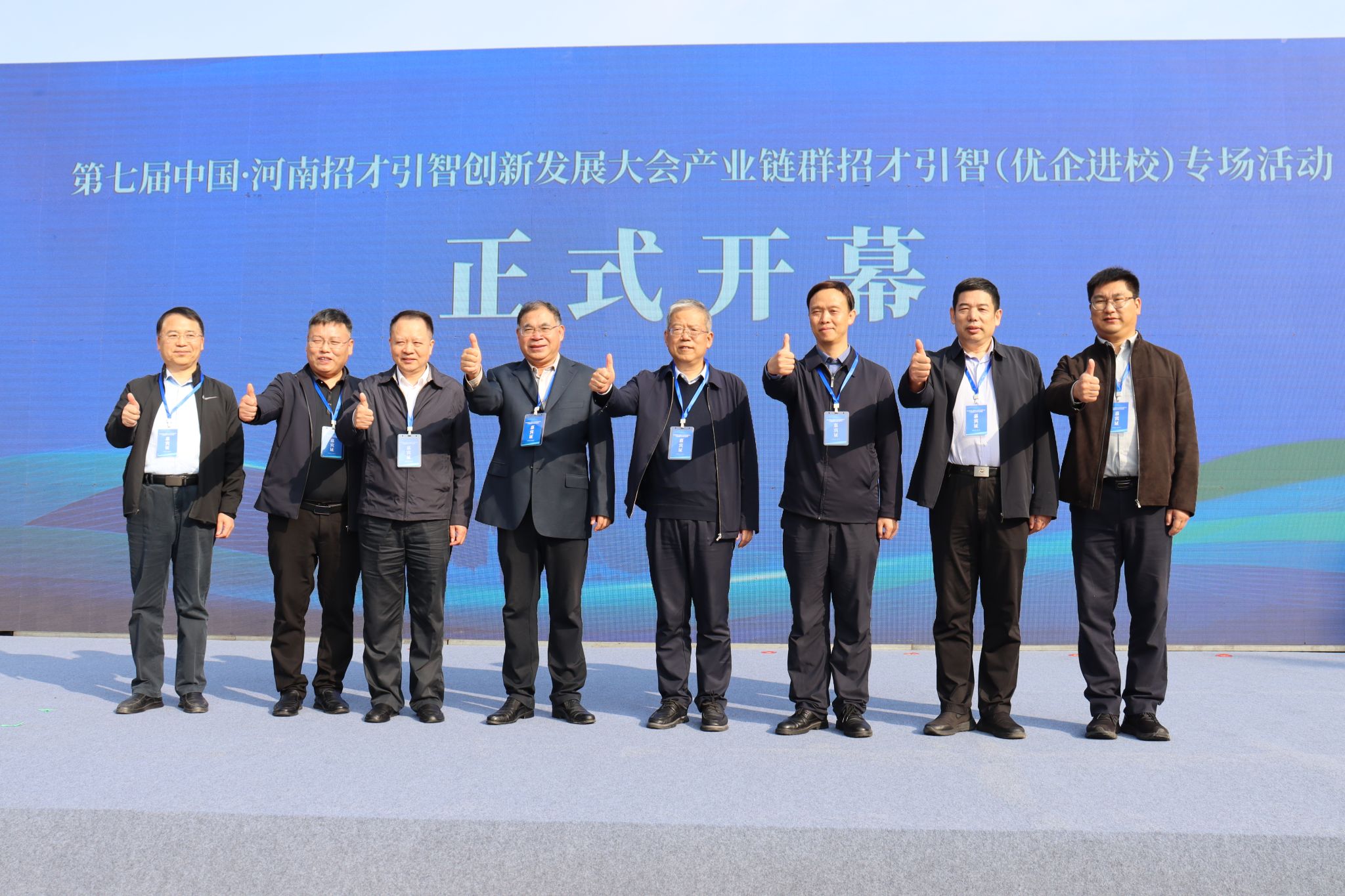 随后,与会领导共同为第七届中国·河南招才引智创新发展大会产业链群招才引智(优企进校)专场活动开幕。