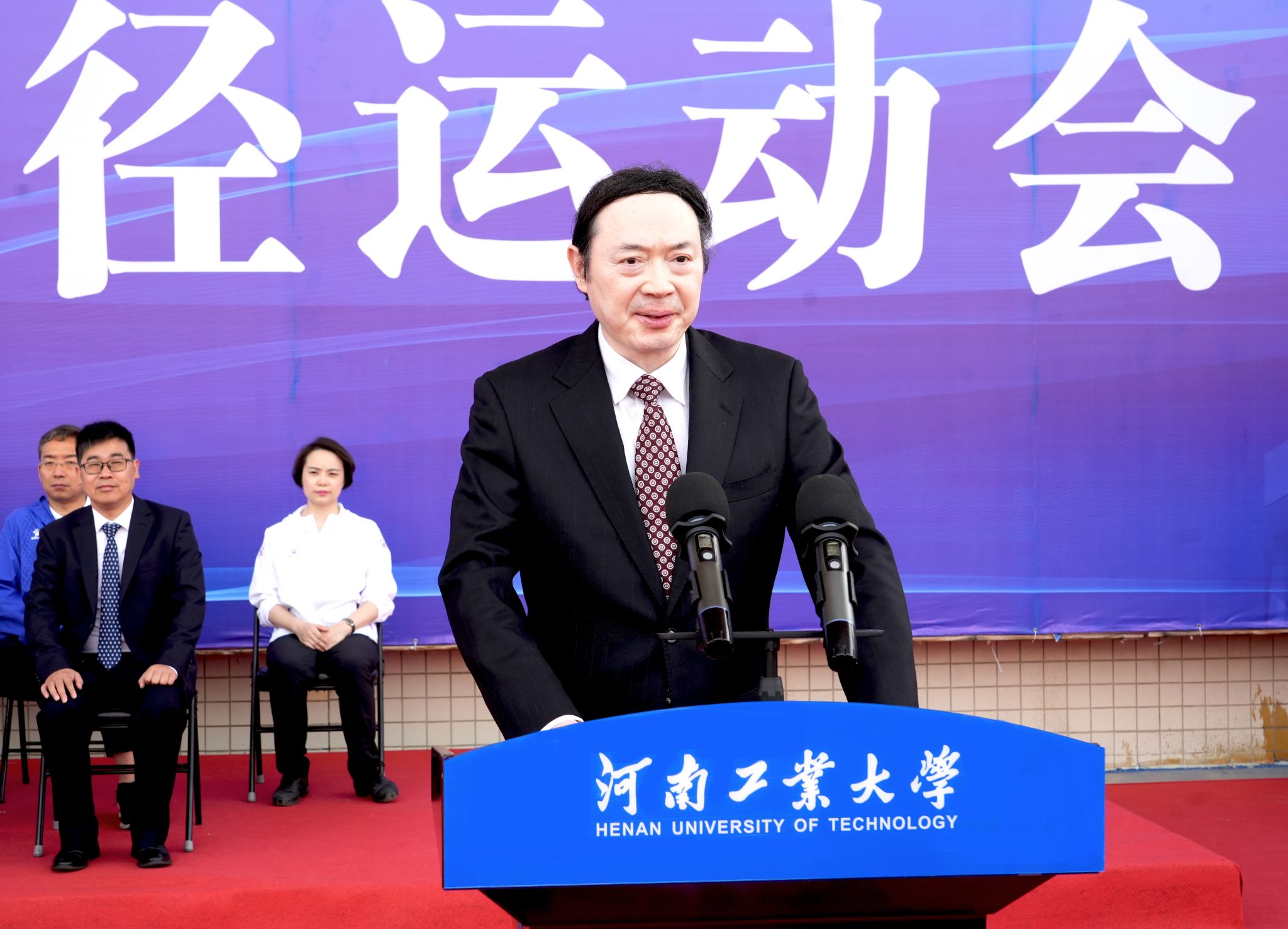 在全体运动员、裁判员和在场师生热切期盼下,吴智深宣布:“河南工业大学第十五届田径运动会开幕!”