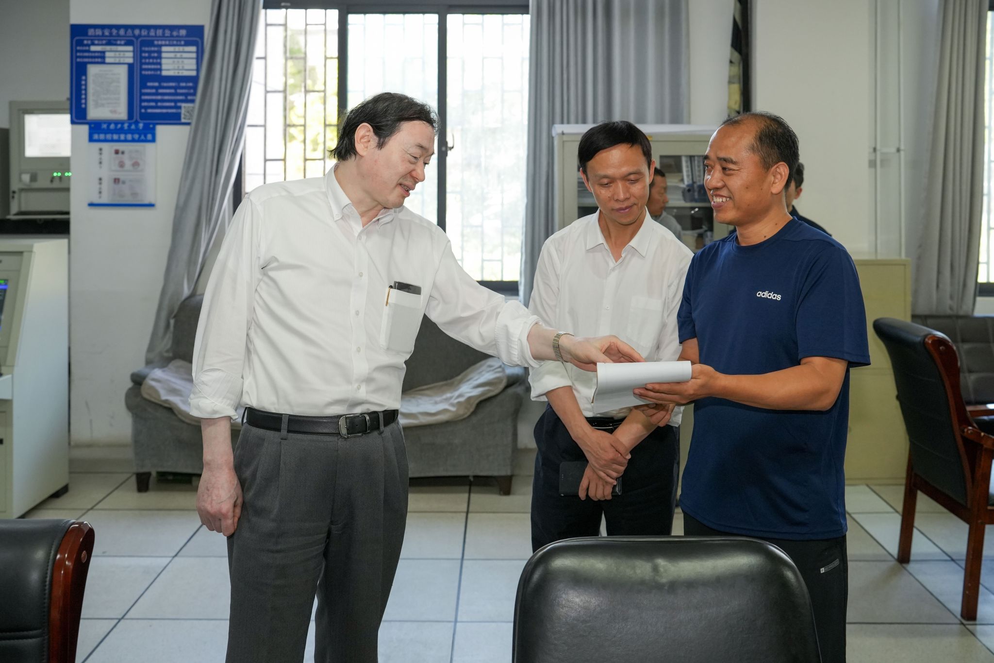 吴智深一行先后前往学校中心配电站、监控室、消防控制室、实验室、学生宿舍等重点区域,听取相关单位安全管理工作汇报,详细查看人防、物防、技防等安全措施情况。