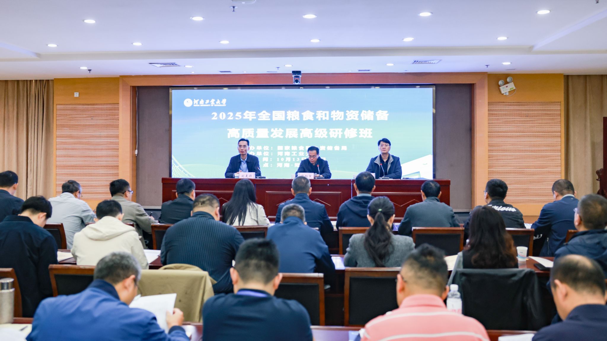 10月14日上午,作为国家专业技术人才知识更新工程项目的重点项目之一,由国家粮食和物资储备局主办、河南工业大学(全国粮食和物资储备教育培训基地)承办的2025年全国粮食和物资储备高质量发展高级研修班在我校莲花街校区开班。