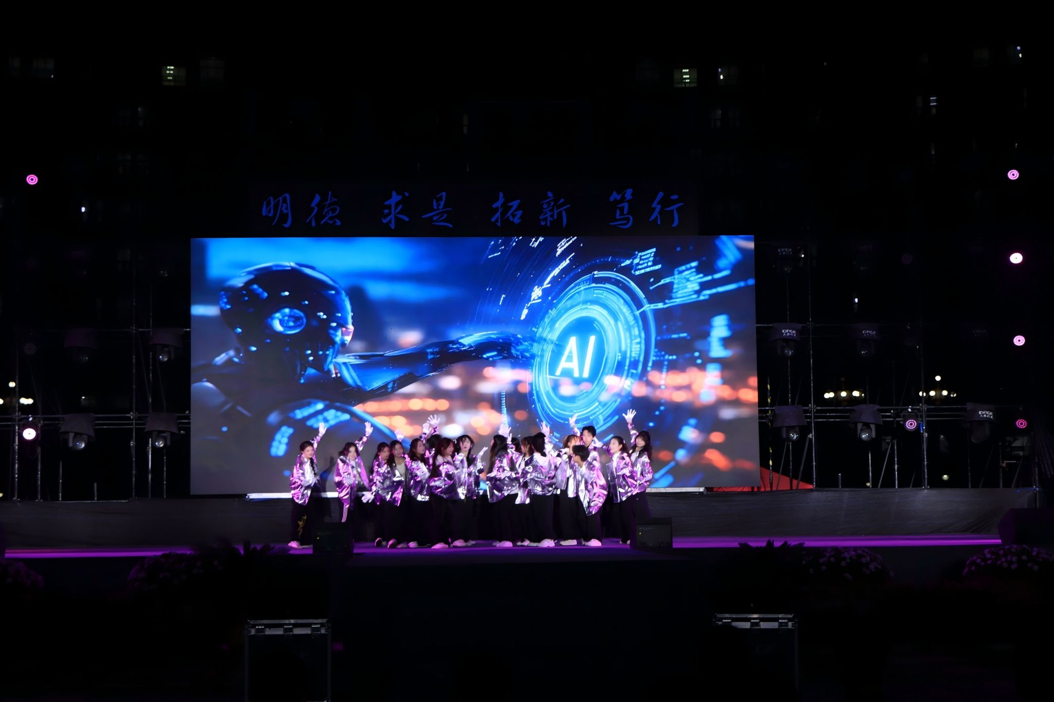 “赓续笃行启新程”以传承红色血脉、弘扬工大精神为核心。经典曲目《四渡赤水出奇兵》和深情民歌《桃花红杏花白》在老教师们的演绎下,为新生上了一堂生动的“红色基因”传承课;街舞《跃见未来动能无限》以充满力量的舞姿展现了新时代青年的朝气;情景朗诵《印迹》则深情回顾了工大70年与国家同频共振的发展历程,使“崇尚科学、勇于探索、报国兴学、自强不息”的工大精神深入人心。