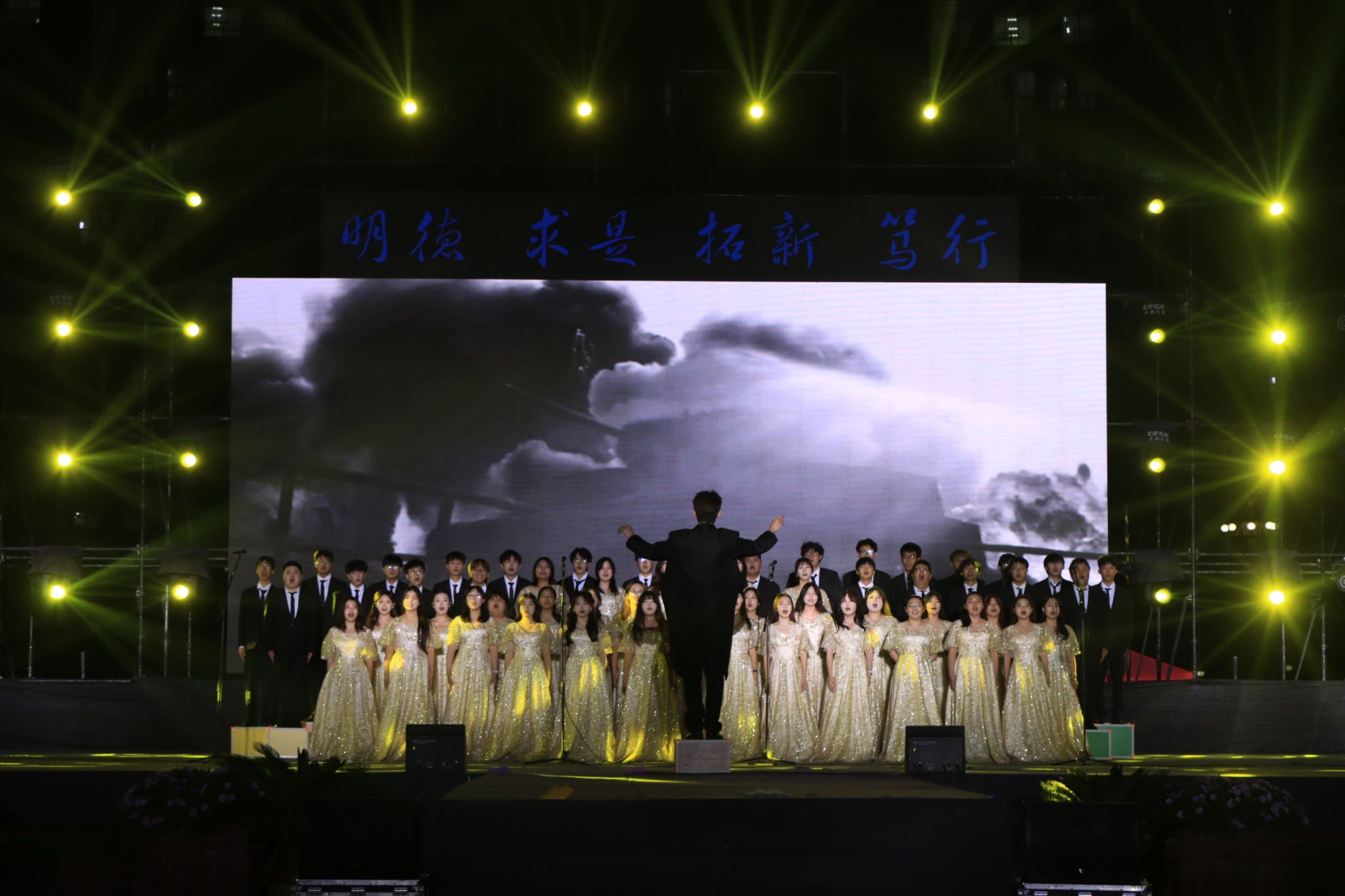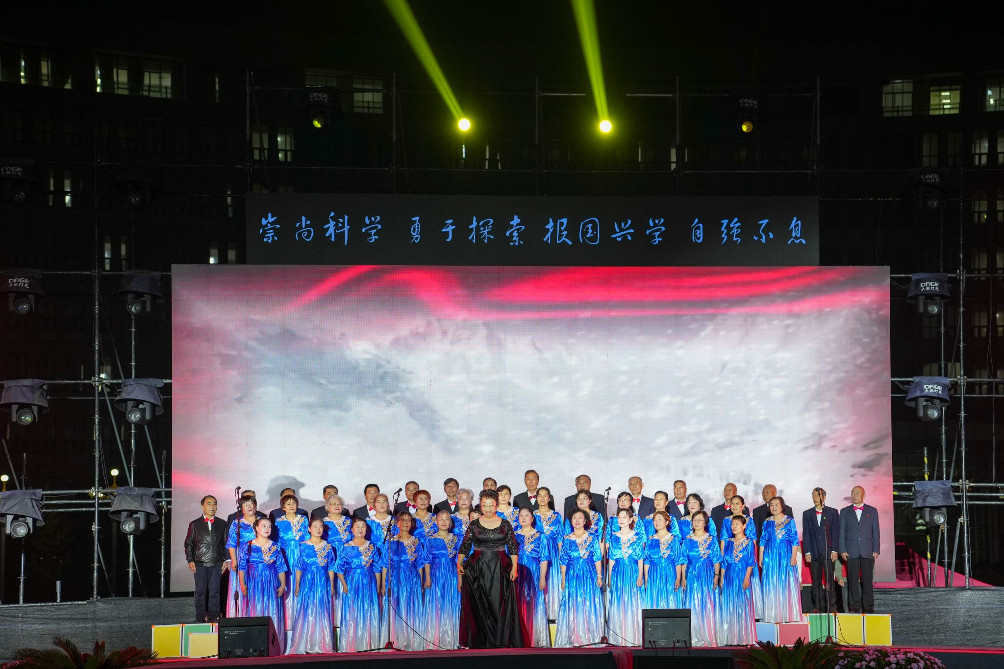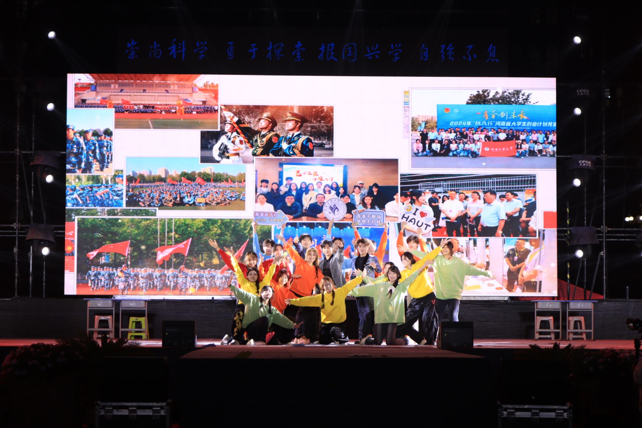 晚会在全场齐声合唱《祖国不会忘记》与《河南工业大学校歌》的感人氛围中圆满落幕。当校歌奏响、灯光全亮时,工大近七十载的薪火传承仿佛历历在目,令人动容。演出结束后,校领导与全体演职人员合影留念。