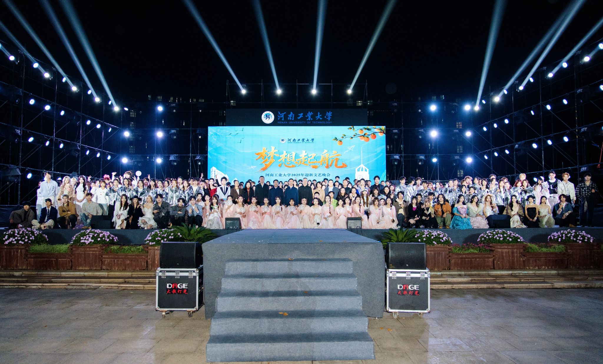 10月15日晚,河南工业大学“梦想起航”2025年迎新文艺晚会在莲花街校区景明广场隆重举行。校长吴智深,校党委副书记、工会主席周相寅,校党委副书记黄泽峰,副校长朱文学,纪委书记、监察专员张玉安等校领导出席活动,与各职能部门、学院(书院)负责人及2025级全体新生共同观看了晚会。