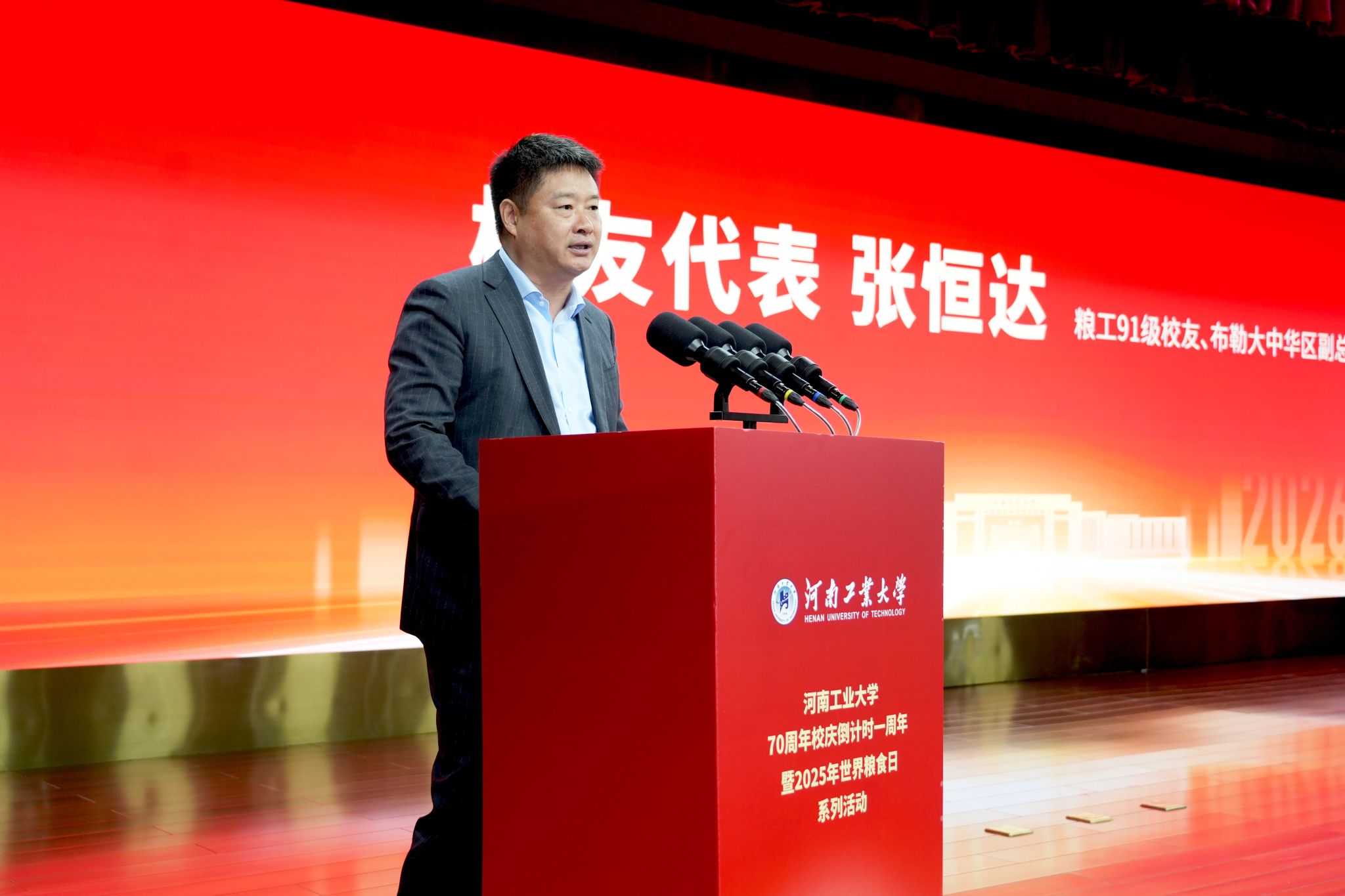 布勒大中华区副总裁、粮工1991级校友张恒达,河南省教育厅原厅长、河南省政协委员联络委员会原主任、油脂1981级校友郑邦山作为校友代表分别讲话。他们深情回顾了在校学习生活的美好时光,表达了对母校真挚的感情,表示将竭尽所能为母校的发展添砖加瓦,呼吁广大校友积极参与到校庆的筹备中,为母校发展贡献力量。