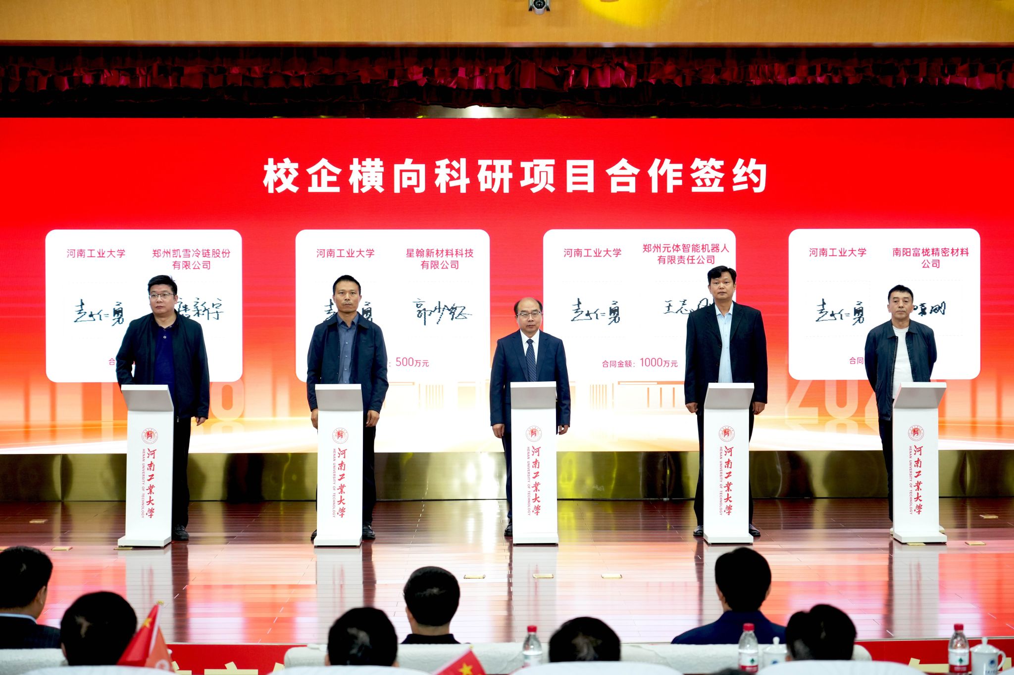 随后,学校与科大讯飞股份有限公司等多家企业进行校企战略合作签约和校企横向科研项目合作签约。签约仪式后,河南省优青、化学化工学院朱利敏教授作为教师代表发言,她表示将立足本职岗位,传承和弘扬“工大精神”,为建设特色鲜明的一流工业大学贡献自己的全部智慧和力量。
