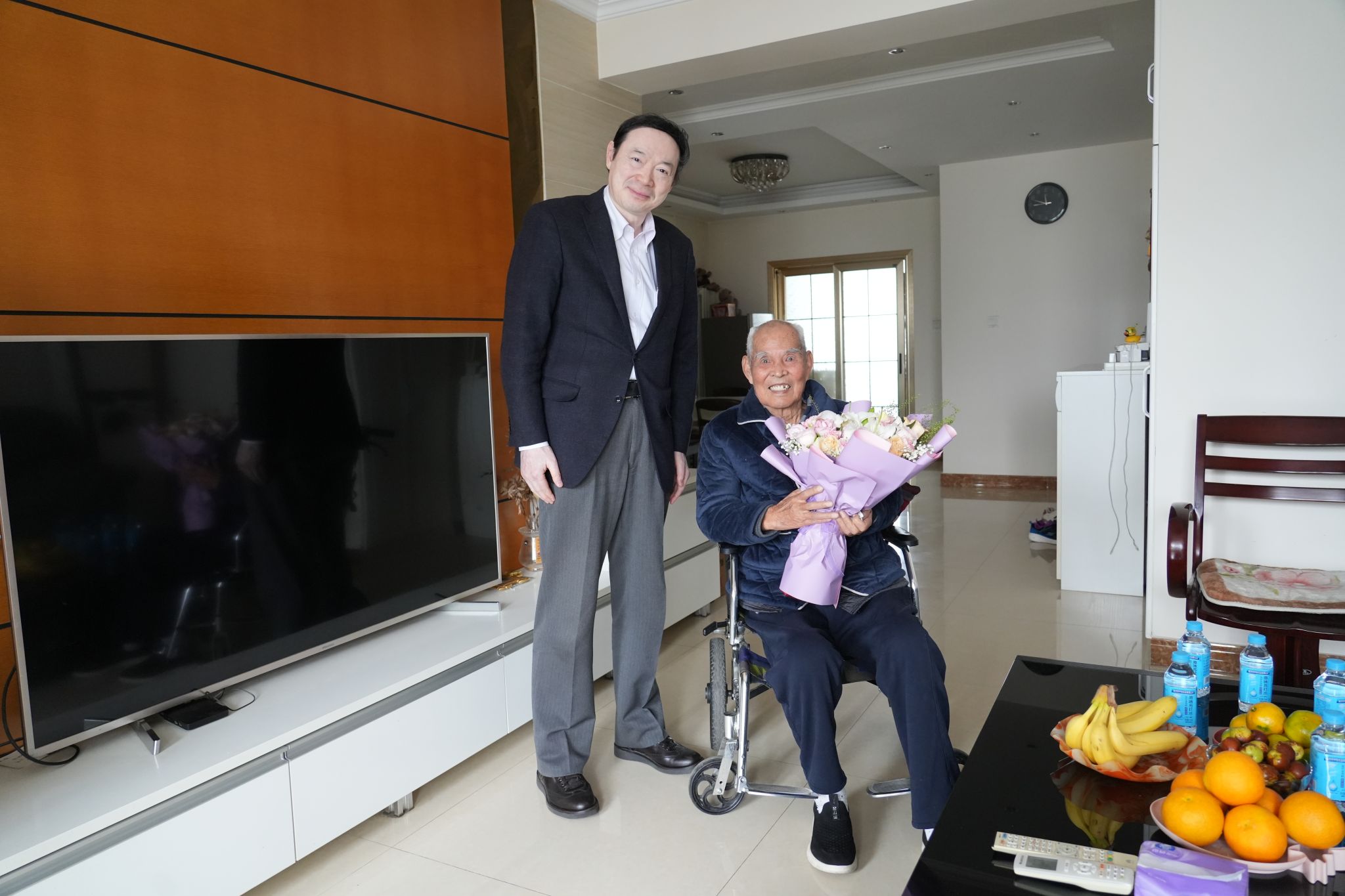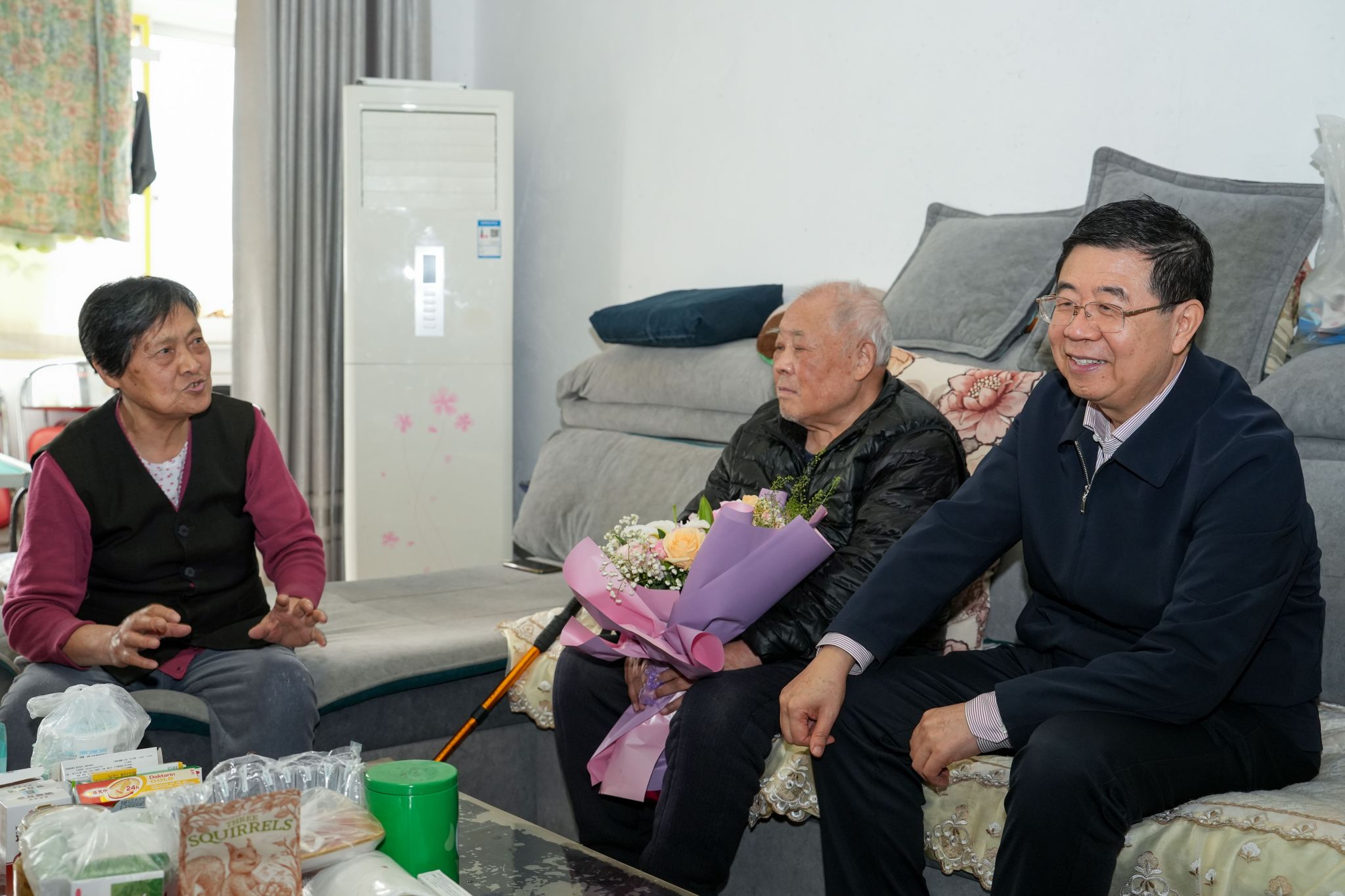 茱萸插鬓人长健,写尽金秋第一声。10月24日上午,在重阳佳节来临之际,为进一步弘扬中华民族传统美德,营造尊老敬老爱老浓厚氛围,切实把学校的关心关怀送到老同志心间,确保离退休老同志们共同度过一个欢乐祥和、健康文明的重阳佳节,校党委书记刘志军、校长吴智深、校党委副书记、工会主席周相寅在校党委办公室、校长办公室和离退休工作处等部门负责同志陪同下分别前往孙家业、李增勤、陈远禧三位高龄离退休老同志代表家中看望慰问,并代表学校党委、行政和全校师生向他们及全体离退休老同志致以诚挚问候和美好祝愿。