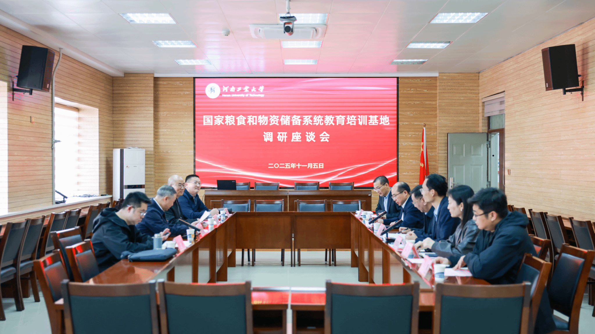 11月5日下午,国家粮食和物资储备系统教育培训基地调研座谈会在我校召开,国家粮食和物资储备局人事司司长廖小平、人才调配处处长程鹏出席,国家粮食和物资储备局河南局分党组成员、副局长齐合森、人事处处长马宏霖陪同调研。校党委常委、纪委书记、监察专员张玉安,校党委常委、副校长赵仁勇,学科建设(“双一流”创建)办公室主任孙尚德以及教育培训学院领导班子参加会议。座谈会由副校长赵仁勇主持。