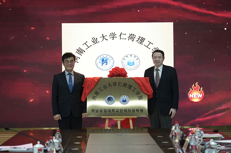 11月11日下午,我校与韩国仁荷大学在莲花街校区共同举办“河南工业大学仁荷理工学院”揭牌仪式。河南省教育厅对外合作与交流处处长王华星、韩国仁荷大学校长赵明寓、我校校长吴智深、副校长赵仁勇以及相关职能部门和学院负责人出席揭牌仪式。仪式由国际交流与合作处处长刘国仕主持。