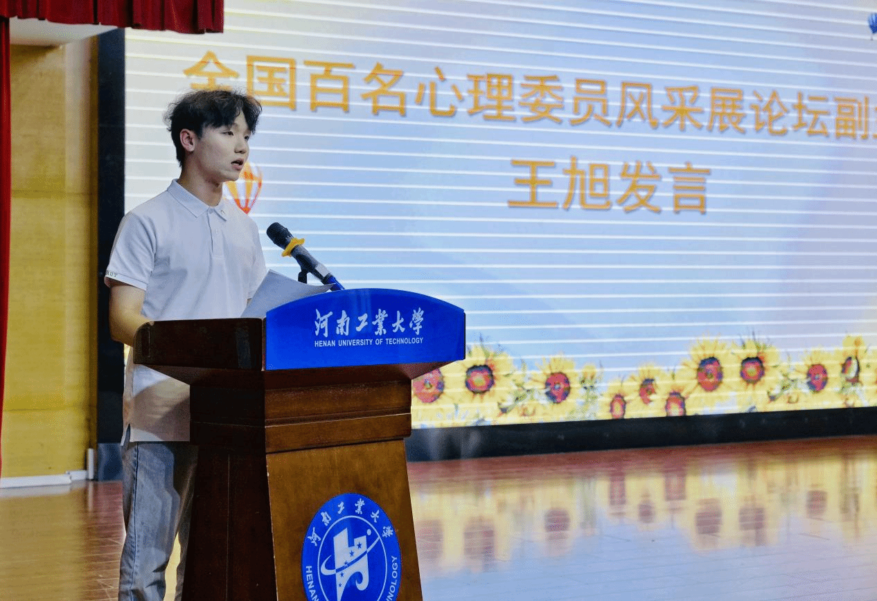 第二十届全国百名心理委员风采展论坛副主席、土木工程学院(建筑学院)学生王旭发言