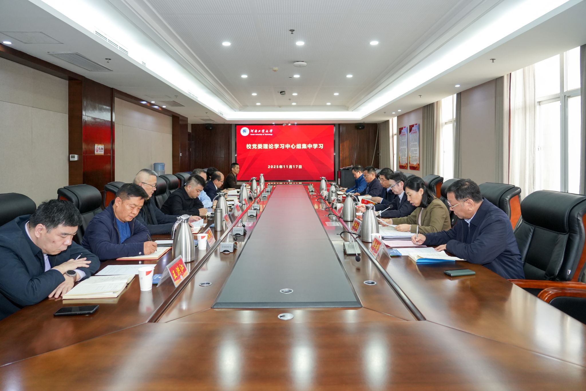 11月17日下午,校党委理论学习中心组在行政楼A515会议室召开集中学习会,以“深入学习贯彻党的二十届四中全会精神”为主题开展集中学习研讨。校领导、校党委常委、相关部门负责同志参加会议,会议由校党委书记刘志军主持。