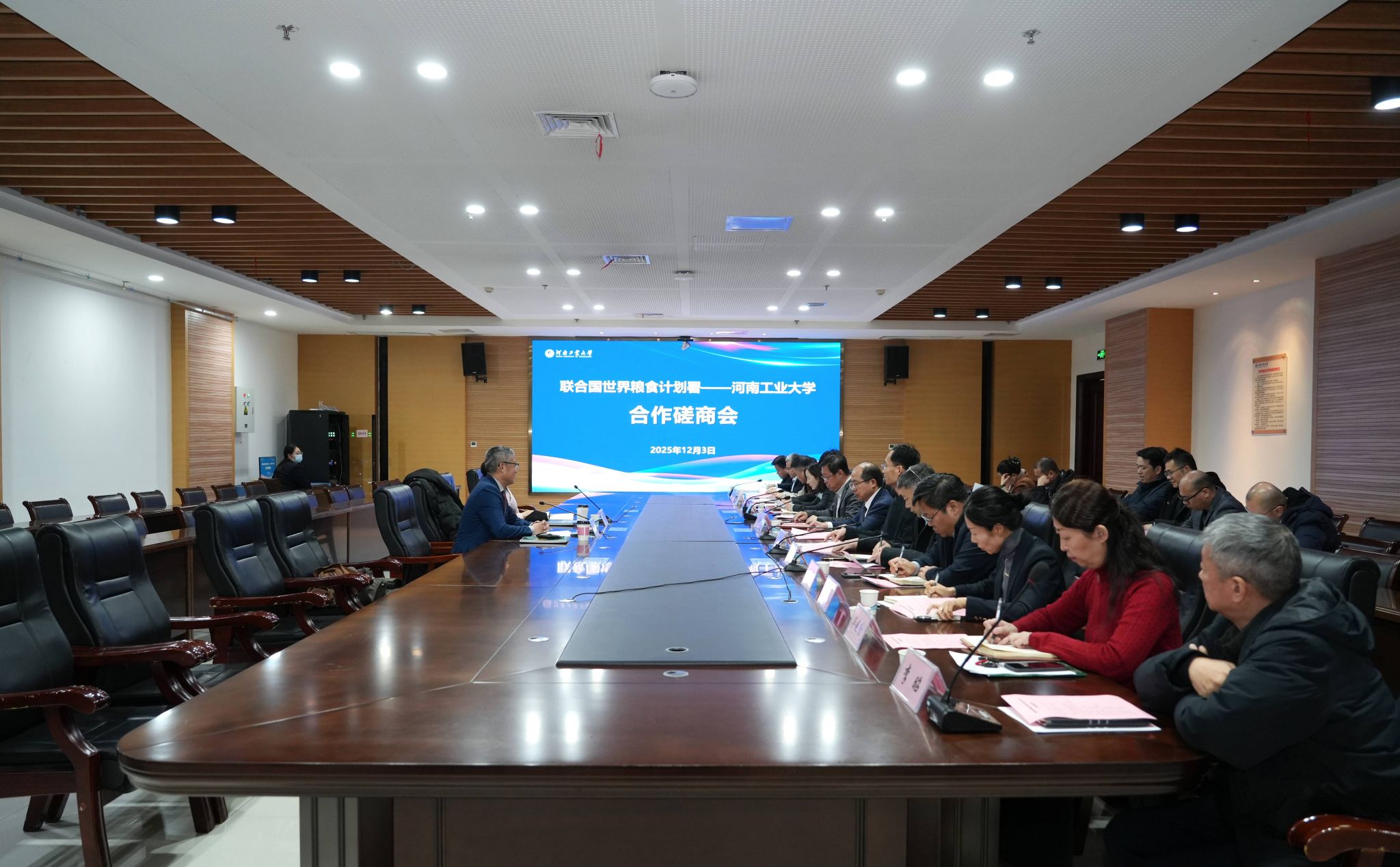 之后,赵兵一行出席了“联合国世界粮食计划署——河南工业大学合作磋商会”。磋商会上,副校长赵仁勇代表学校致欢迎辞。他指出,粮食安全是维系人类生存发展的根本,也是世界和平的基石。作为新中国第一所粮食本科高校,学校始终心怀“国之大者”,致力于通过科技创新与人才培养服务国家及全球粮食安全。自2022年双方签署谅解备忘录以来,学校积极响应国家“一带一路”倡议,深度参与联合国世界粮食计划署主导的南南合作项目,在坦桑尼亚、斯里兰卡等国别项目中提供了坚实的技术支撑。赵仁勇强调,面向未来,学校将继续发挥学科优势,全面落实合作共识,为构建更具韧性的全球粮食系统贡献“工大力量”。