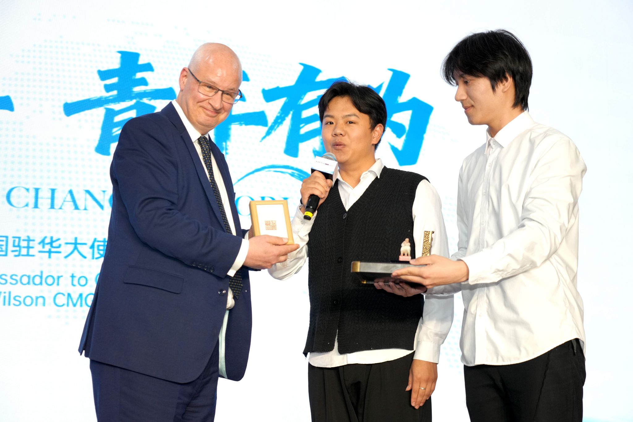 演讲结束后,我校学生代表向魏磊大使赠送了一份特别礼物——一方镌刻有大使中文姓名“魏磊”的印章,这份富有中国文化韵味的礼物象征着中英之间的人文纽带与深厚情谊。