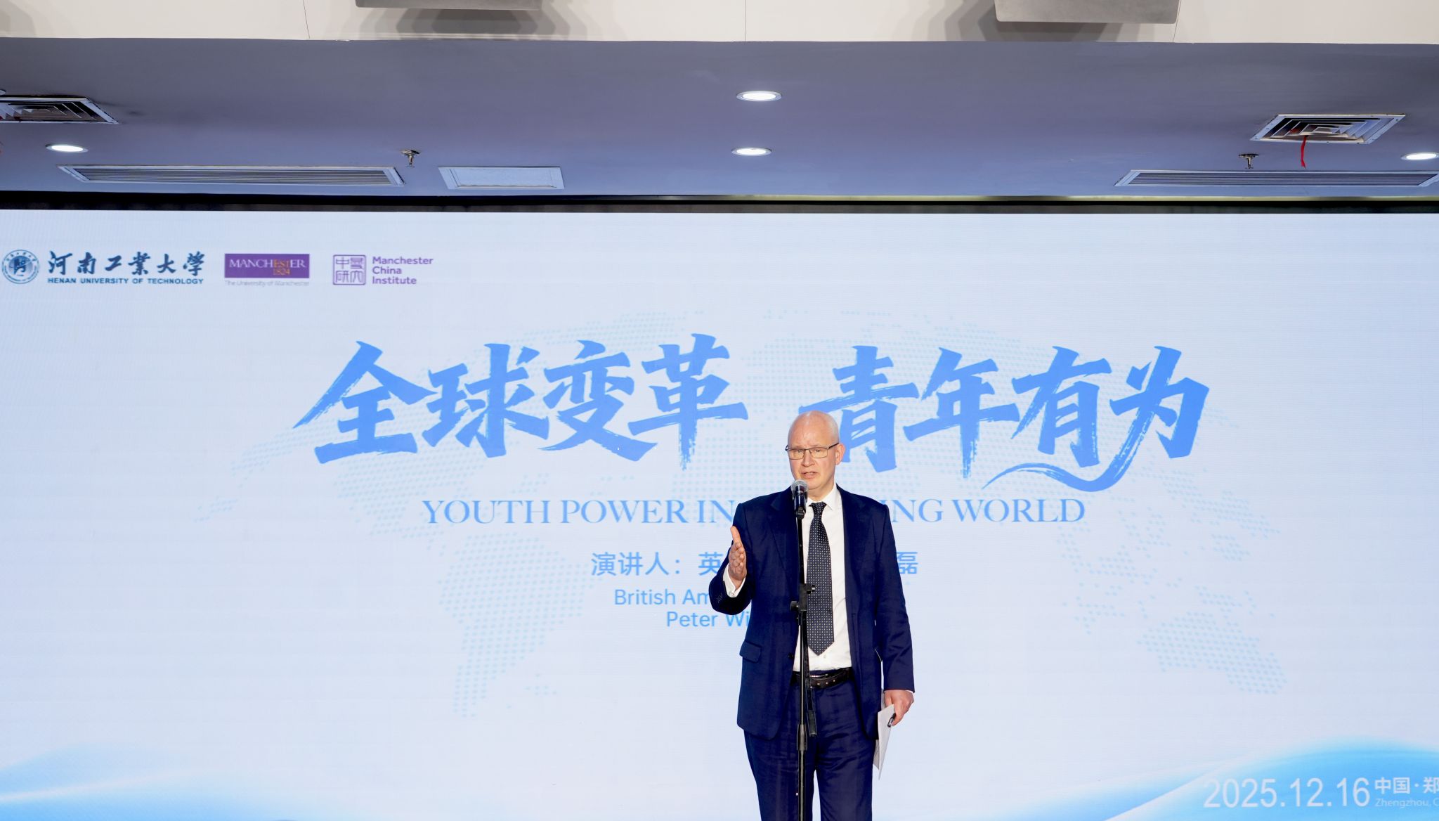 12月16日下午,英国驻华大使魏磊(Mr. Peter Wilson CMG)率英国驻武汉总领事麦多明(Mr. Dominic McAllister)、副总领事柯睿哲(Mr. Richard Cox)等外交官代表团访问河南工业大学,并出席由英国曼彻斯特大学与河南工业大学共同承办的“2025中英国际摄影大赛”开幕式。这是魏磊大使履新后首次访问河南高校,体现了对我校国际化办学及对英交流合作成果的高度认可。