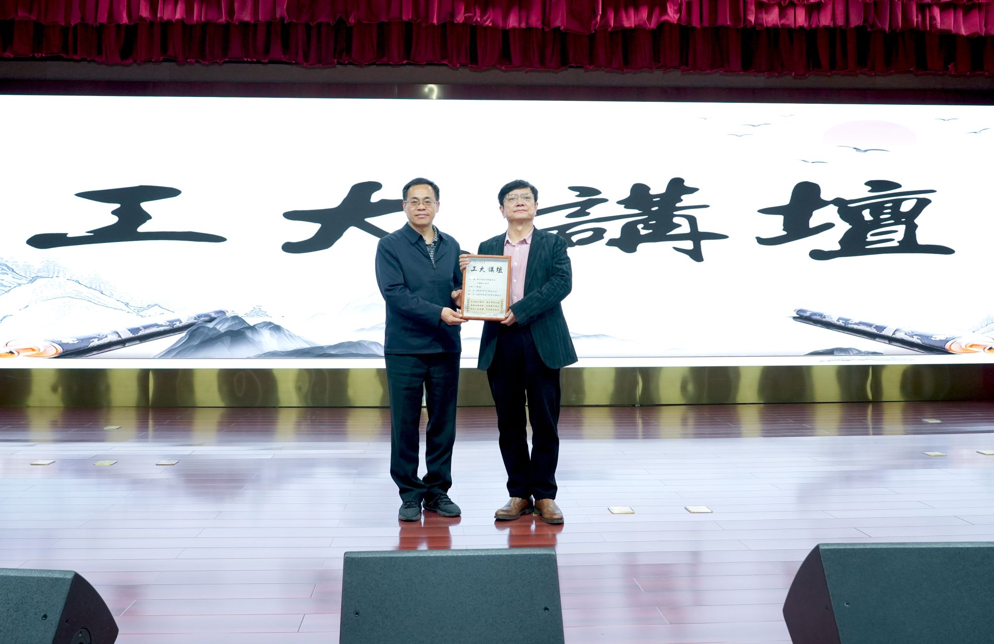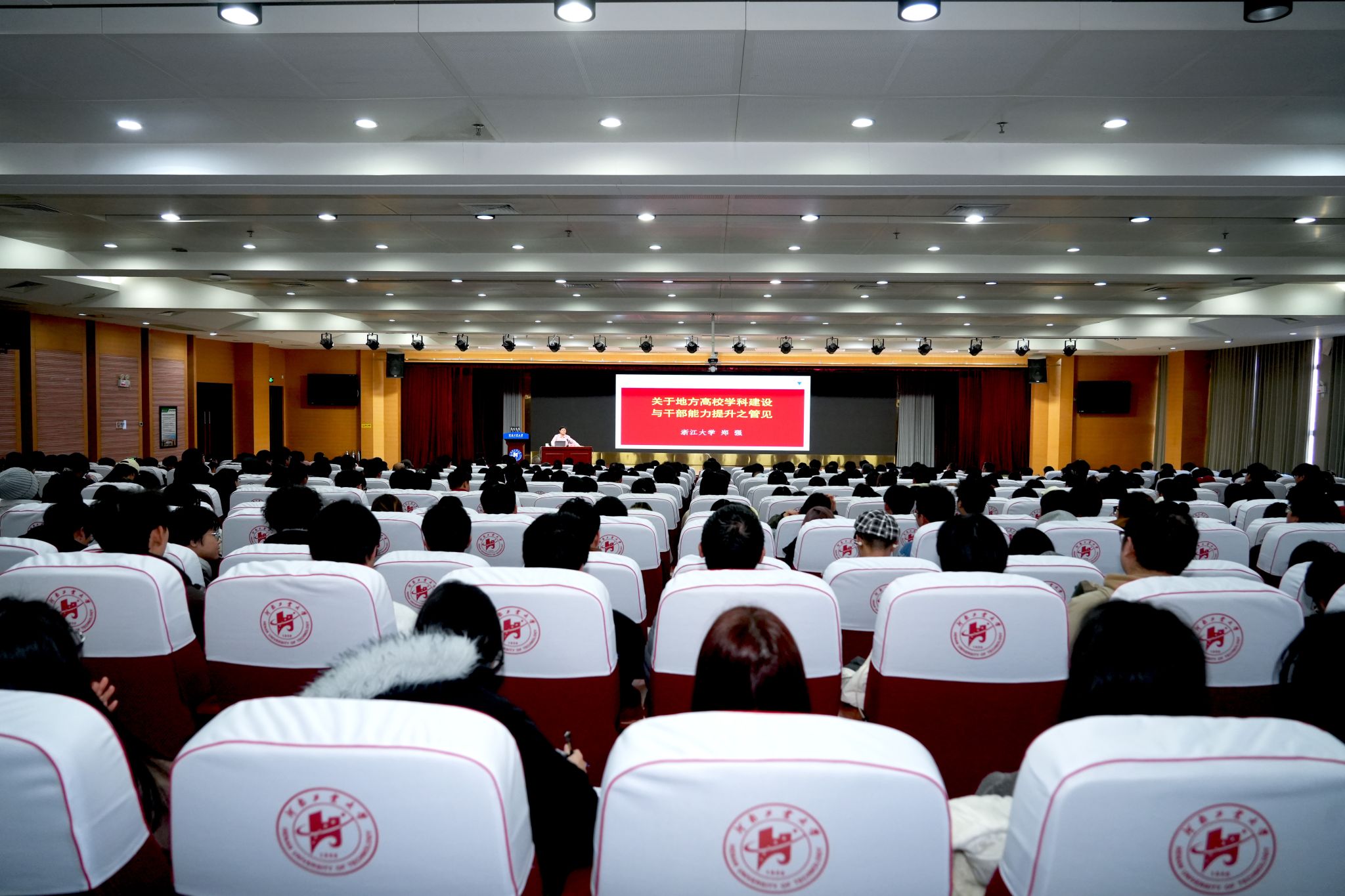 1月9日,工大讲坛第400期在莲花街校区学术报告中心D303报告厅举行。浙江大学求是特聘教授、著名教育家郑强应邀作专题报告,以《地方高校学科建设与干部能力提升》为主题,为现场听众带来一场兼具家国情怀、学术深度与实践智慧的思想盛宴。省教育厅原厅长郑邦山,校党委副书记、工会主席周相寅,校纪委书记、监察专员张玉安,副校长王良出席报告会,各单位主要负责人、各学院负责学科建设工作的中层副职、校团委全体成员及师生代表参加活动。校长吴智深在报告会后与郑强教授深入交流,并赠送工大纪念转盘。论坛由校党委副书记黄泽峰主持。