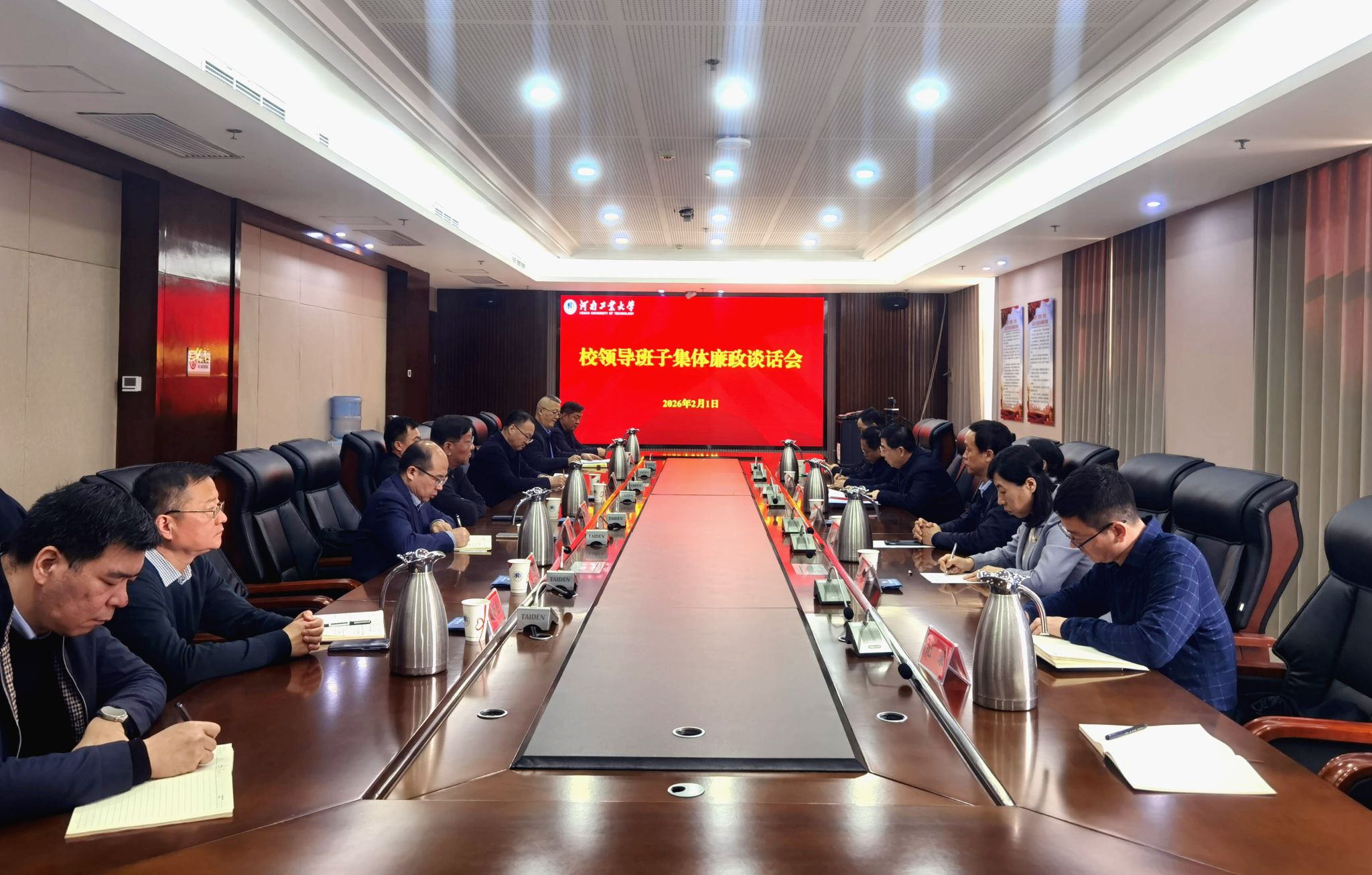 2月1日,学校召开领导班子集体廉政谈话会,深入学习贯彻二十届中央纪委五次全会精神,传达学习十一届省纪委六次全会精神,以更高标准、更实举措推进全面从严治党。校党委书记刘志军主持会议并对领导班子成员进行廉政谈话。