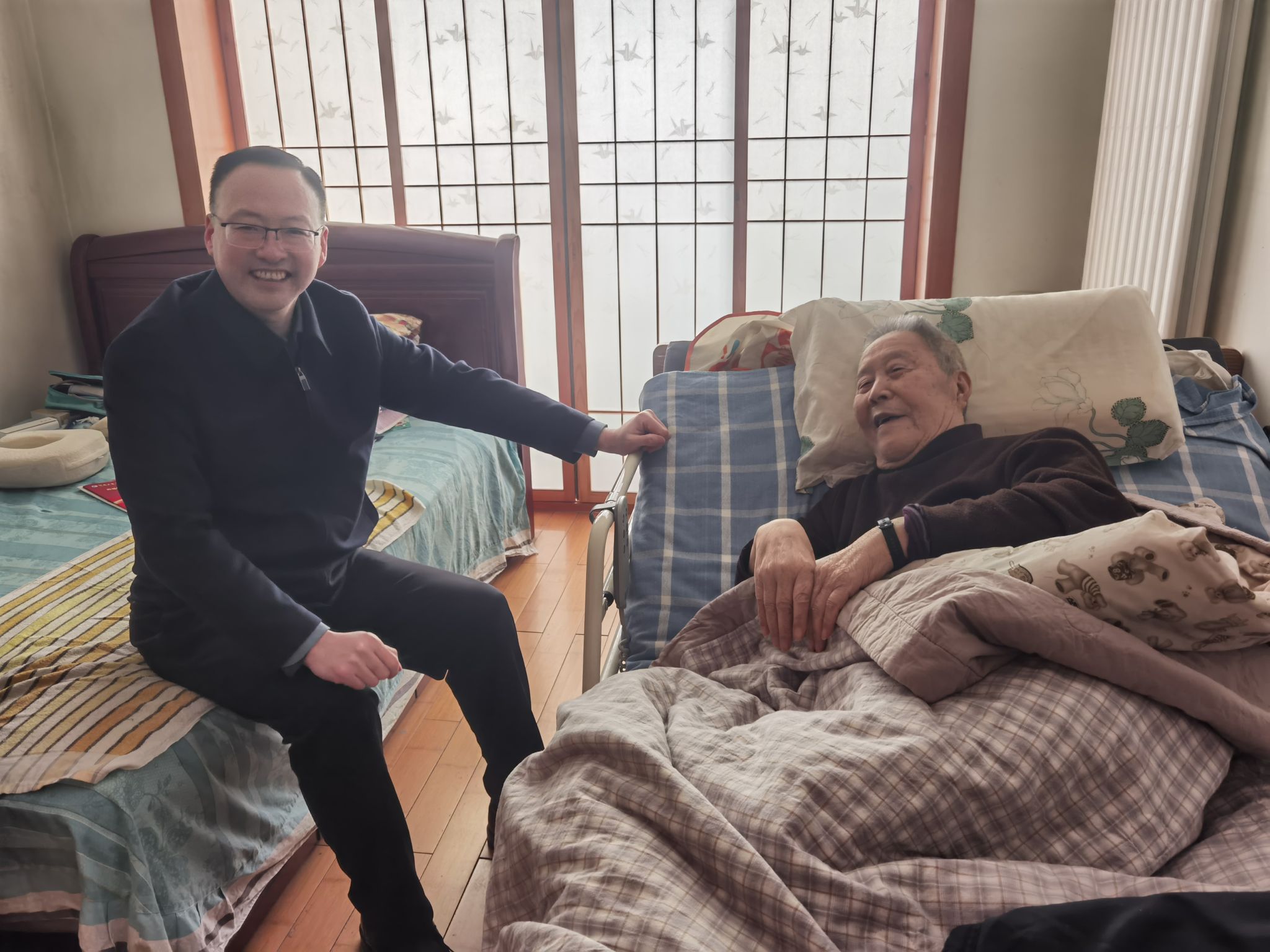 走访过程中,校领导与老同志们亲切交谈,仔细询问他们的健康和生活状况,了解实际需求,并叮嘱他们注意天气变化、保重身体。交流中,校领导介绍了2025年学校在人才培养、科学研究、学科建设等方面取得的新进展,让老同志们感受到学校蓬勃向上的发展态势。刘志军表示,学校今日的成绩凝聚着老一辈教职员工的智慧与汗水,他们的经验和精神是学校宝贵的财富。校领导还围绕学校当前的重点工作及七十周年校庆筹备,认真听取了老同志们的意见建议,希望他们在照顾好身体的同时,一如既往地关心和支持学校发展,继续发挥政治、经验和威望优势,为学校事业汇聚力量、贡献智慧。