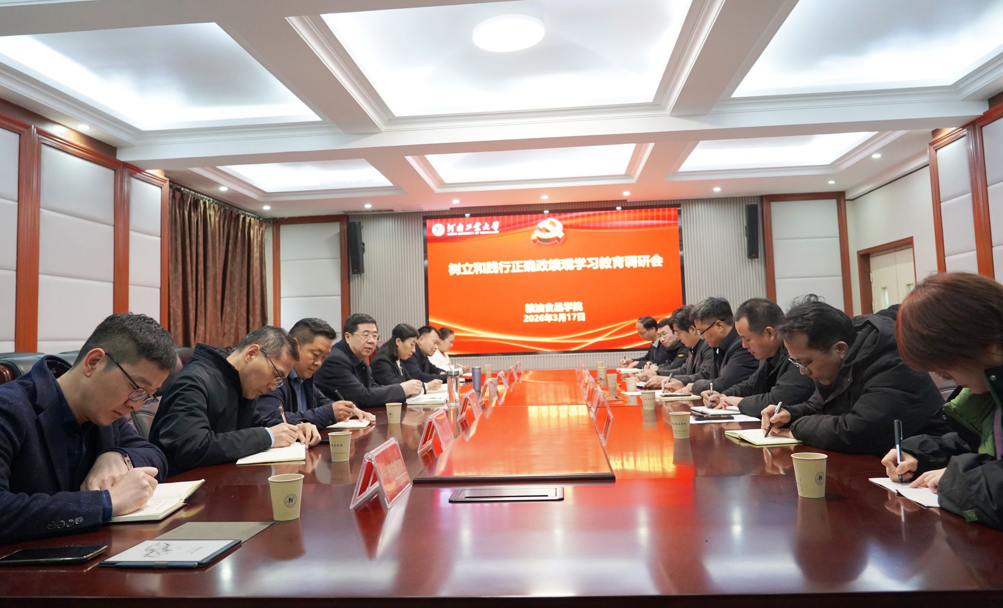 3月17日上午,校党委书记刘志军带队调研树立和践行正确政绩观学习教育工作,与粮油食品学院领导班子、师生代表面对面交流,征求学习教育意见建议。副校长白艳红,党委办公室、校长办公室、党委组织部、发展规划处、学科建设办公室等单位负责人陪同调研。