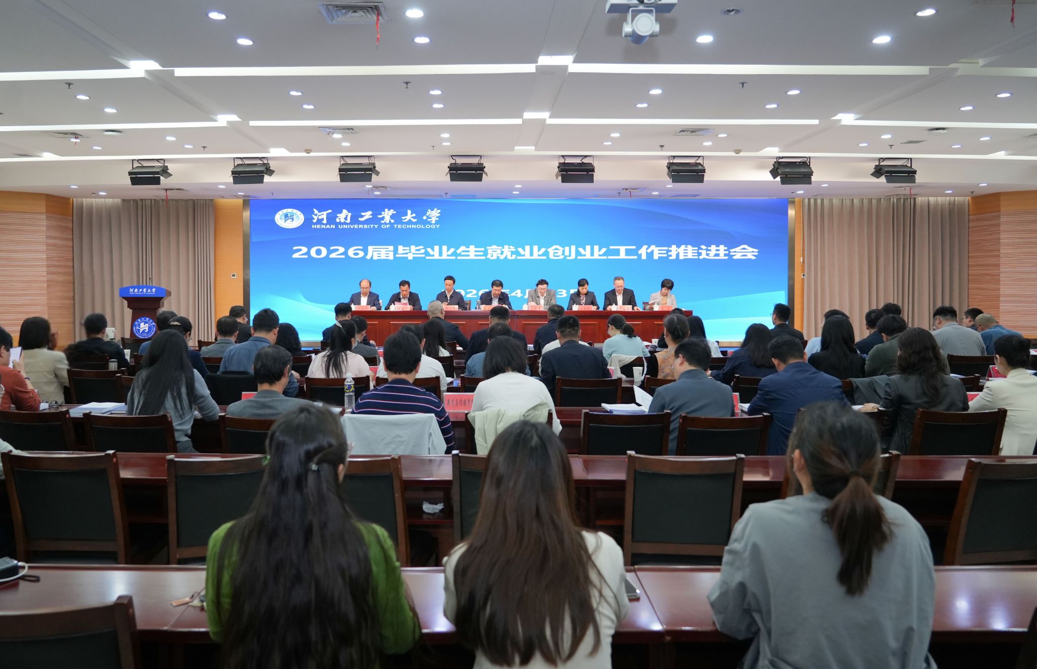 4月13日,学校2026届毕业生就业创业工作推进会在莲花街校区学术报告中心D205报告厅召开。全体在校校领导出席会议。校毕业生就业创业工作领导小组成员部门负责人、各学院党委书记、院长、分管学生工作党委副书记、全体毕业班辅导员及就业创业中心全体人员参加会议。会议由校长吴智深主持。