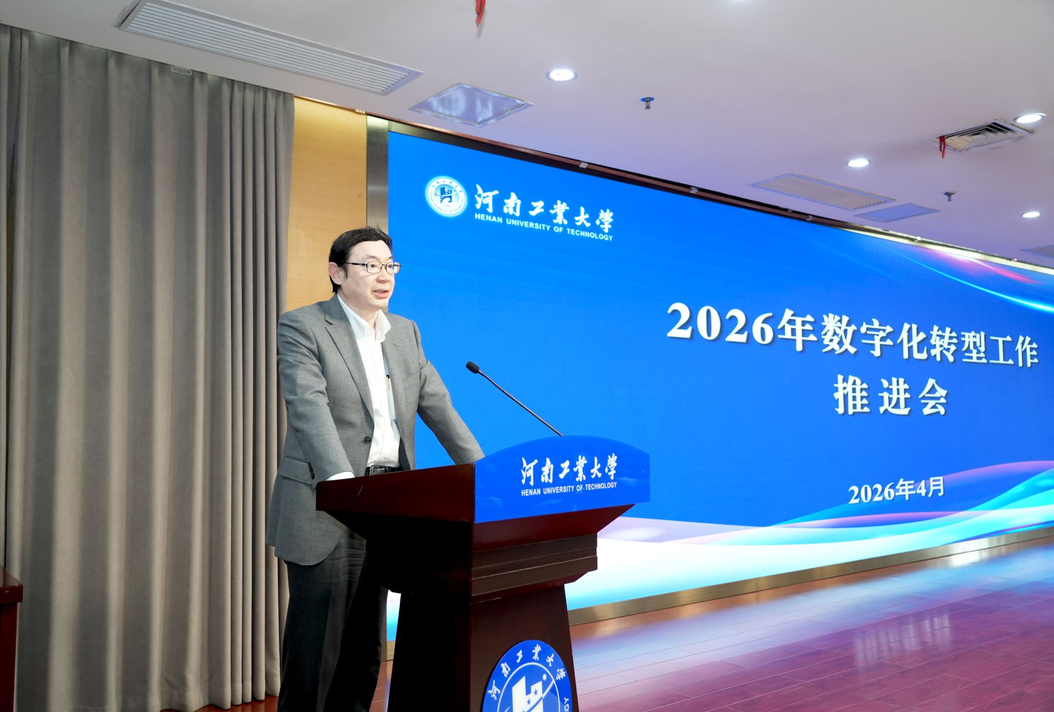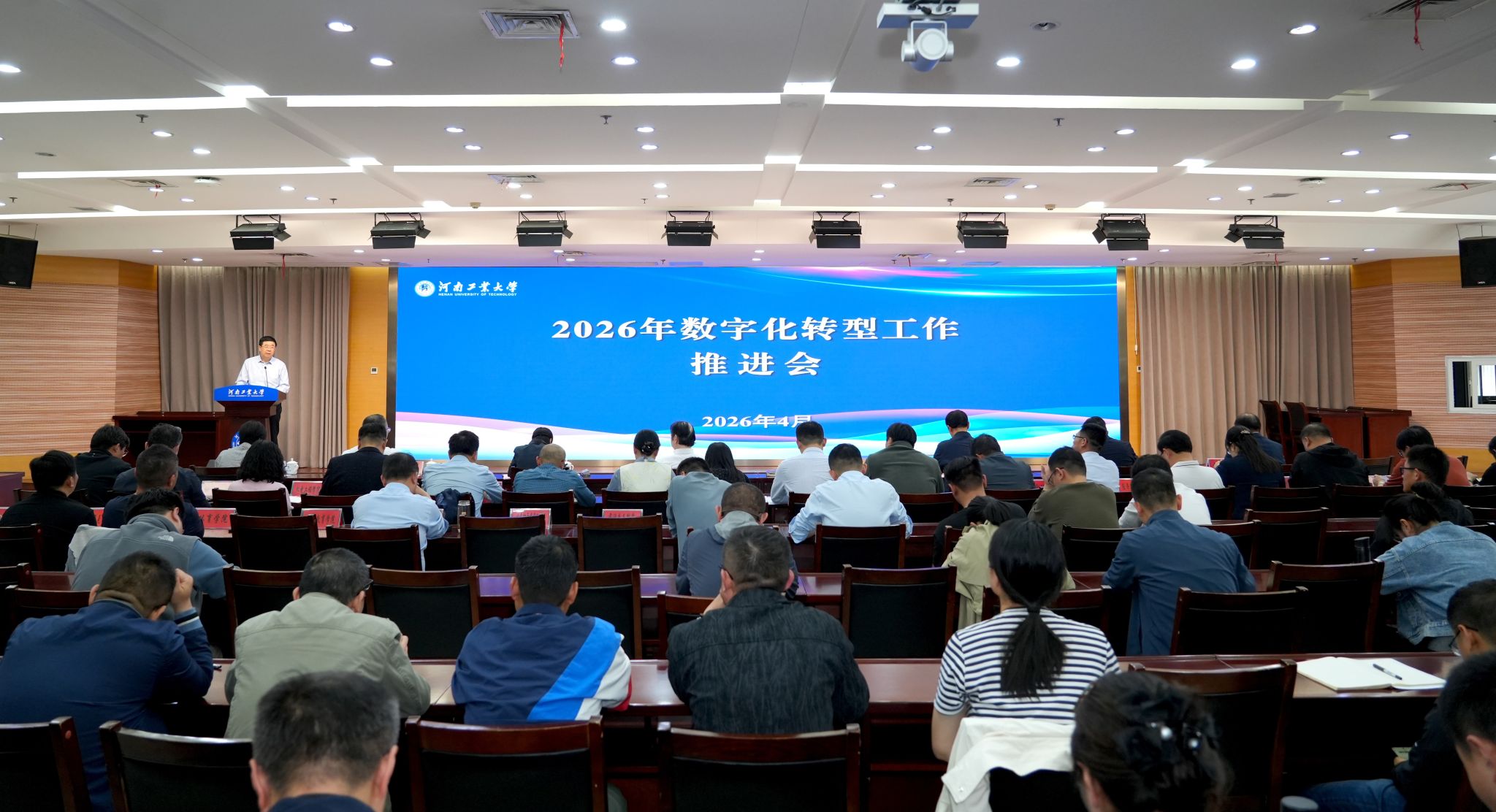 4月13日下午,学校在学术报告中心D205报告厅召开数字化转型工作推进会。数字化转型工作领导小组各专班牵头单位负责人、各职能部门主要负责人、各教学单位院长和各单位信息化专员参加会议,全体校领导出席会议。会议由校长吴智深主持。