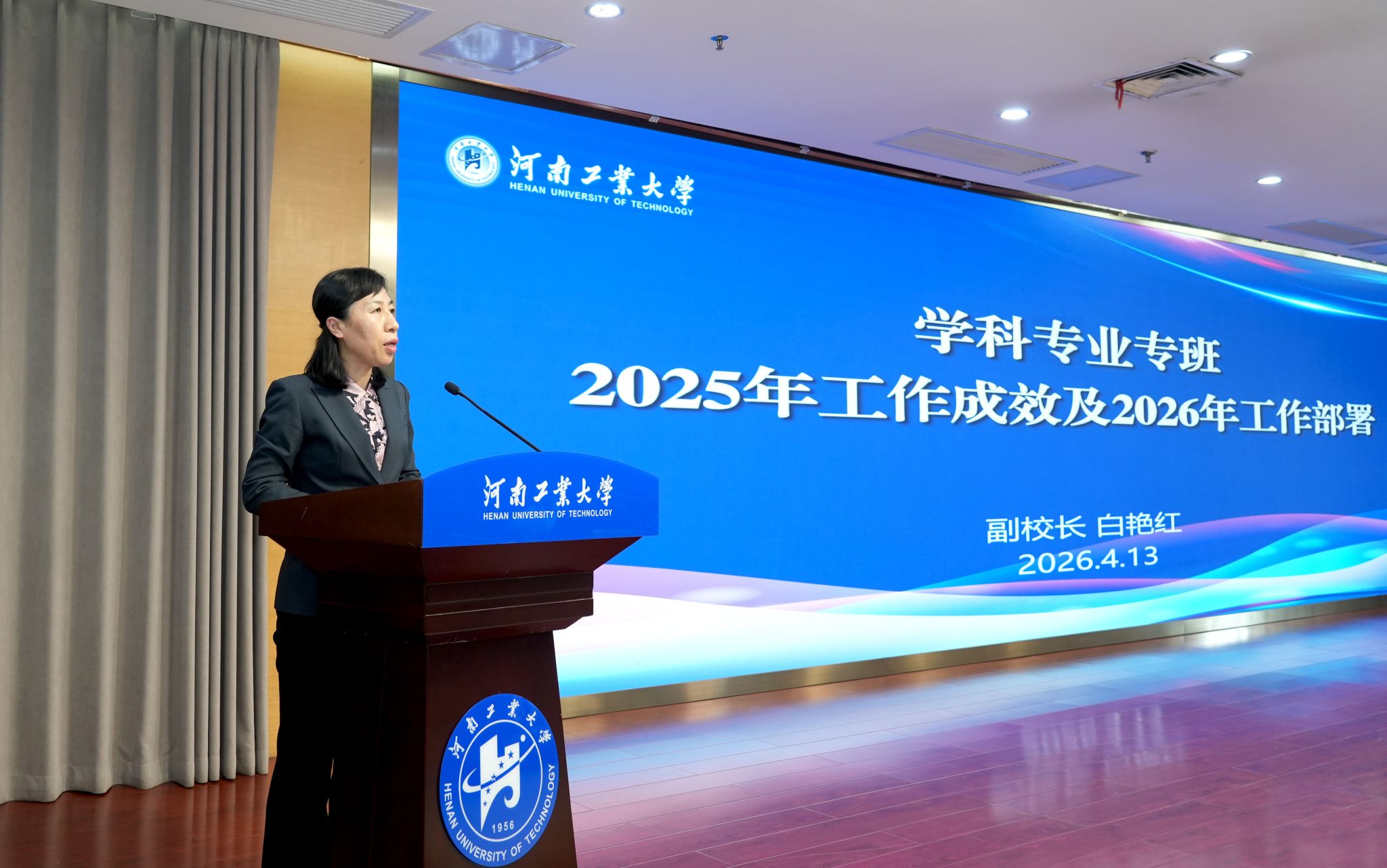 副校长白艳红代表学科专业专班进行汇报。她强调,2025年学科专业专班聚焦“数智赋能、交叉融合、服务增效”三大核心,高质量完成既定重点任务。2026年,专班将聚焦“提质增效、数字赋能”,着力构建AI驱动的科研创新服务体系,打造智能化科研服务平台,推进科研资源数据库和学科管理系统建设,为学校学科建设决策提供数据支撑。