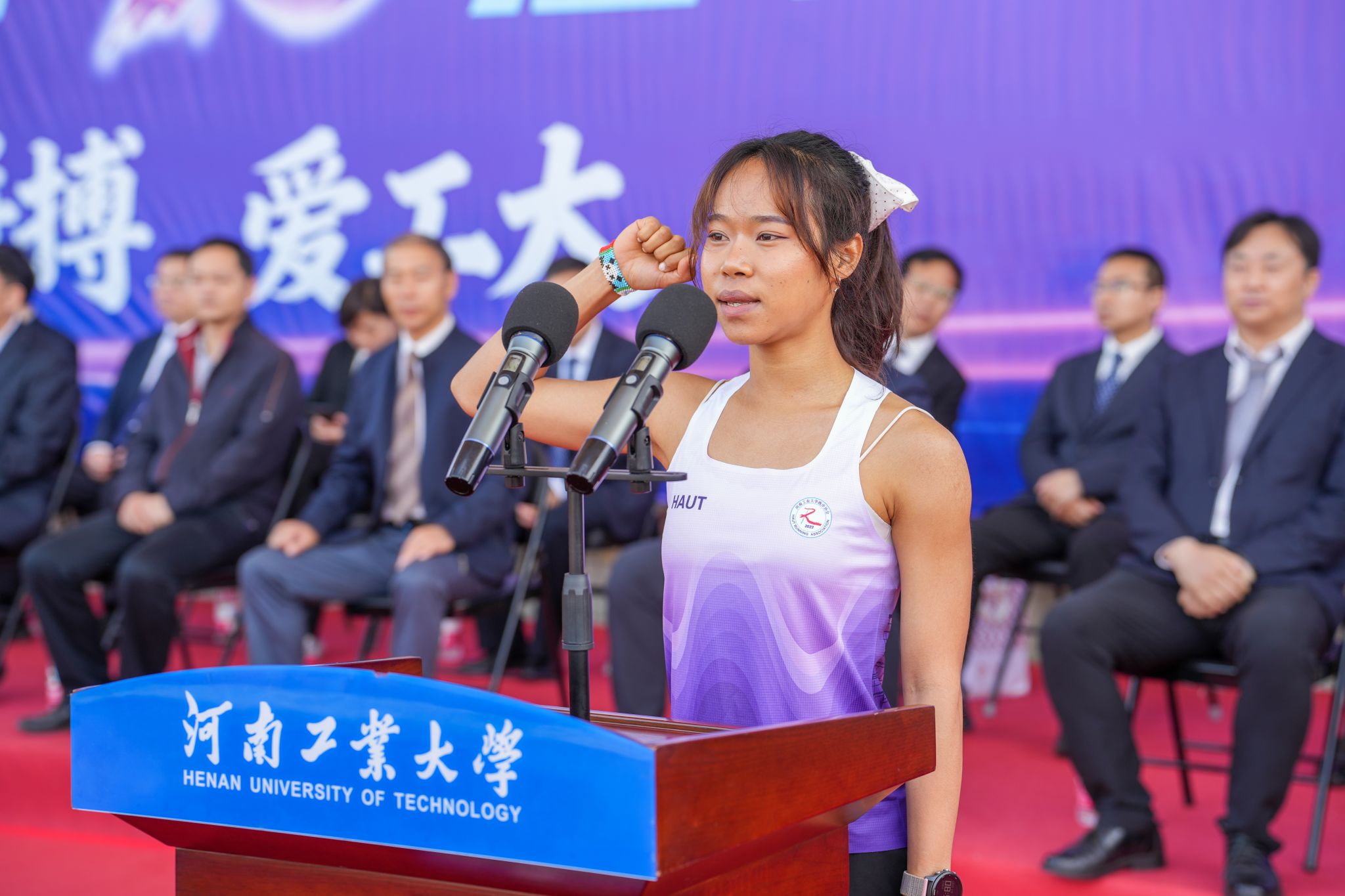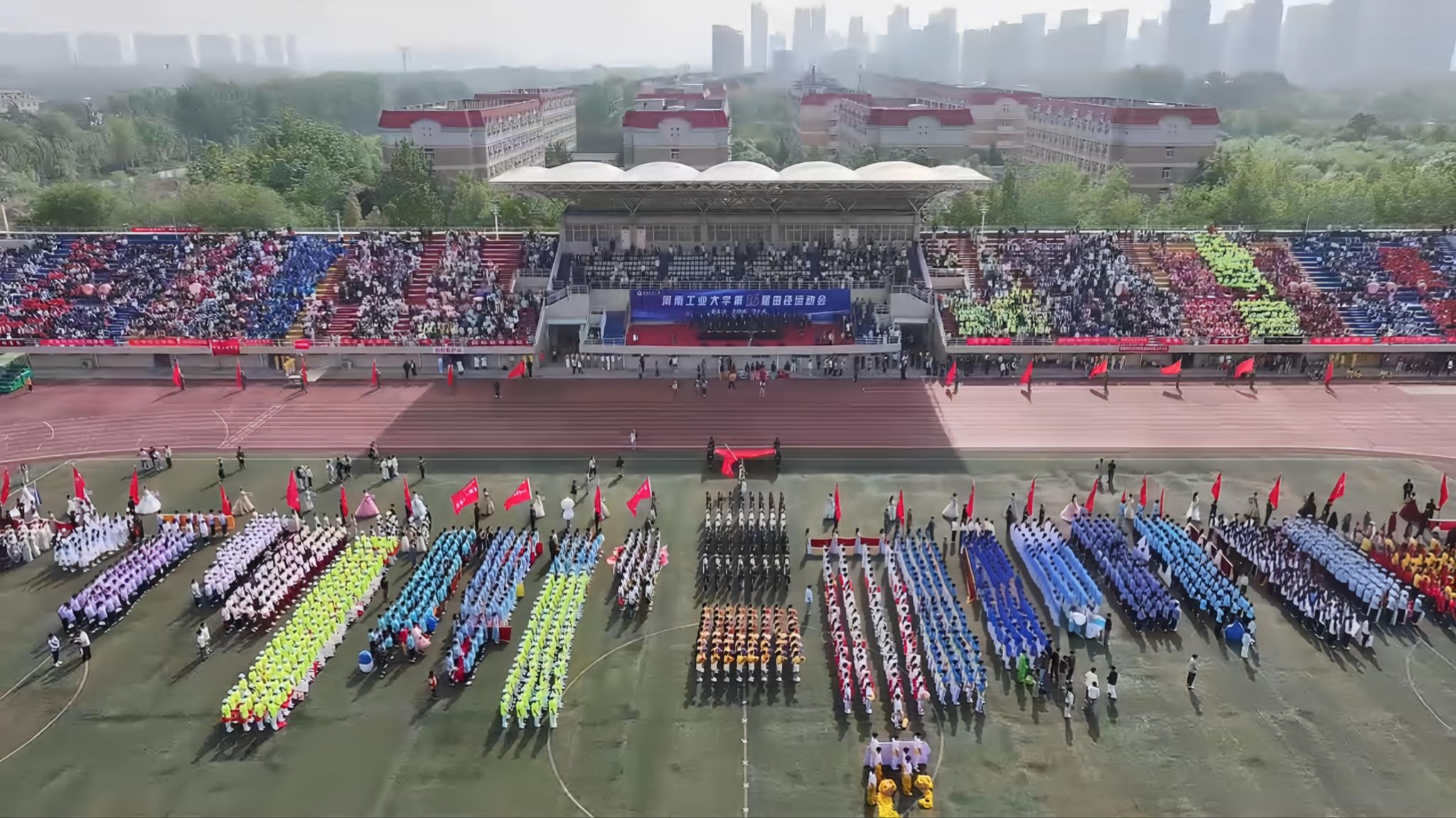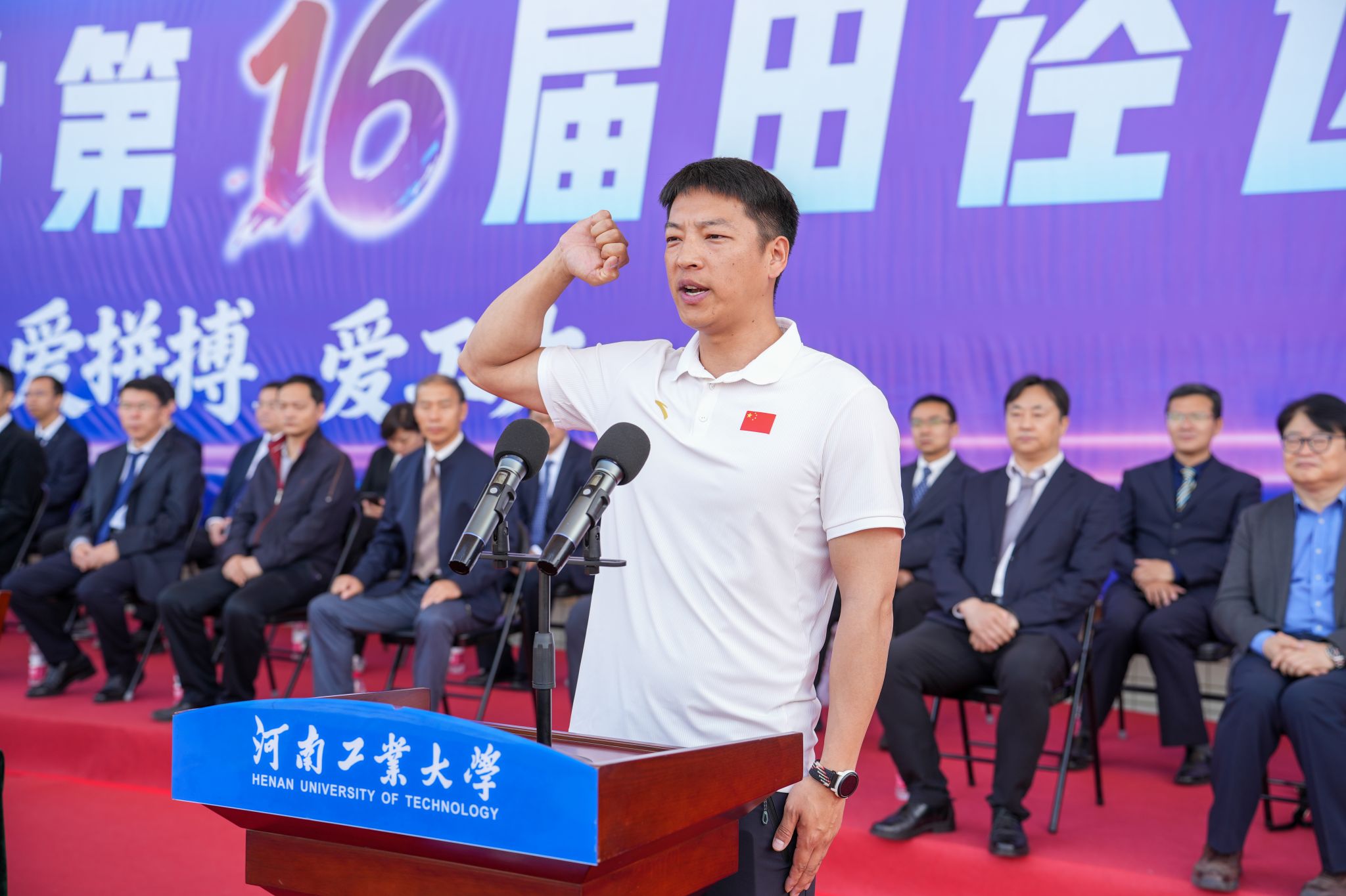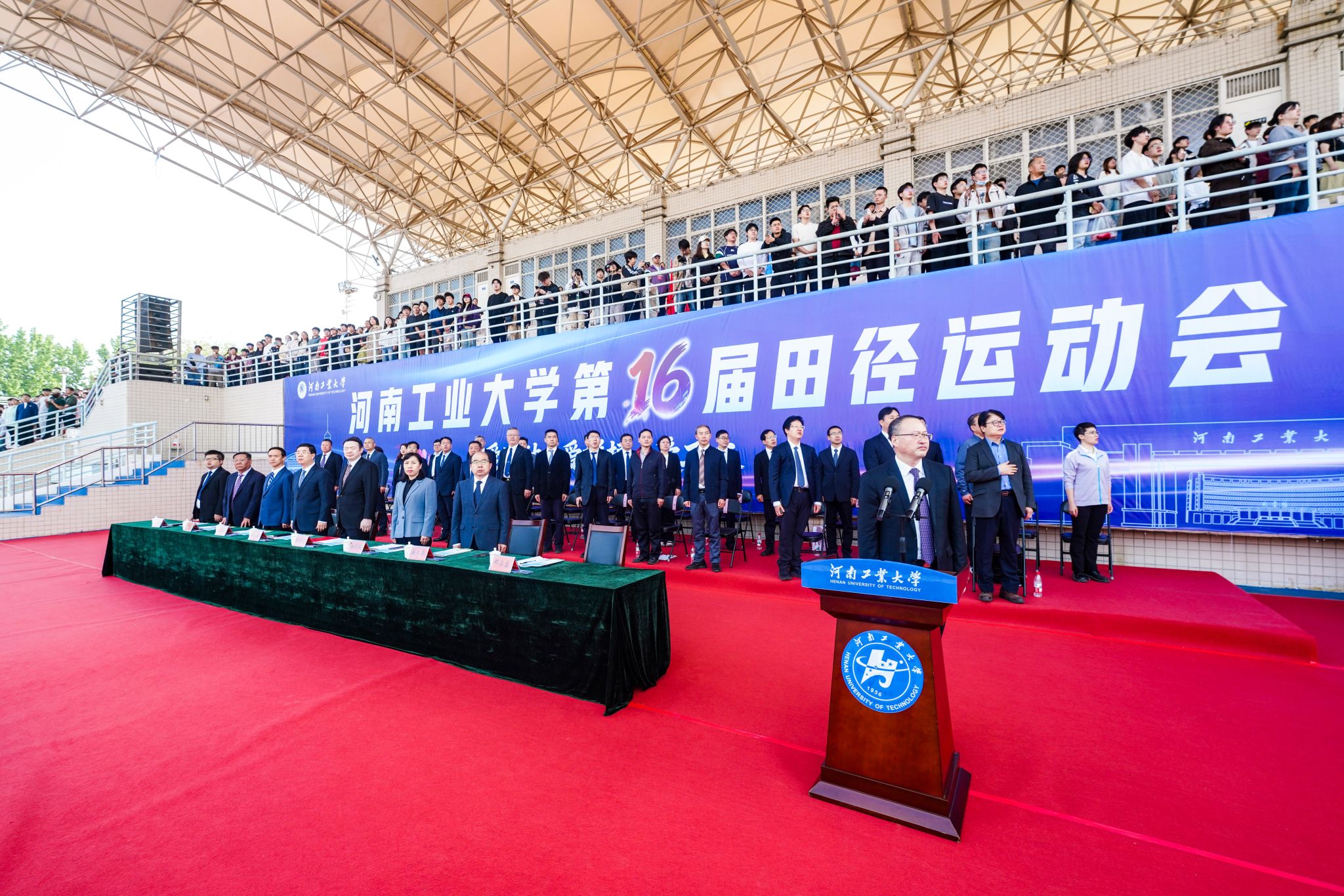 在全场热烈的掌声与期盼中,校党委书记刘志军宣布:“河南工业大学第十六届田径运动会开幕!”