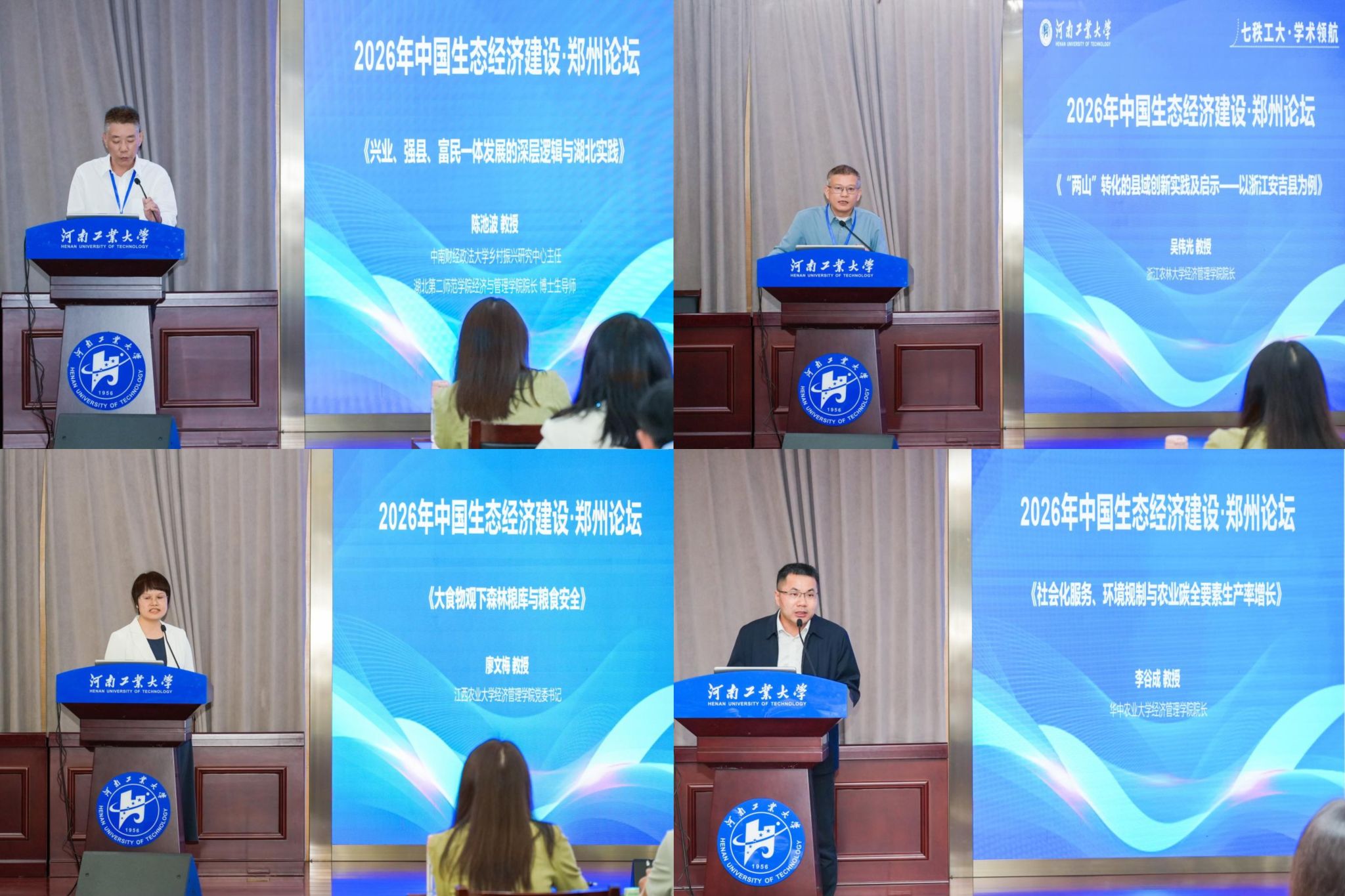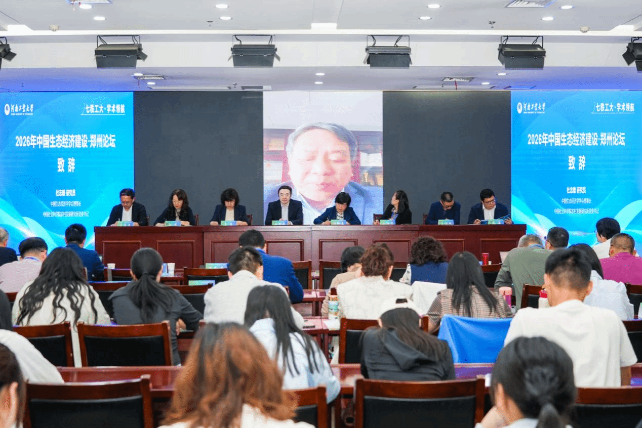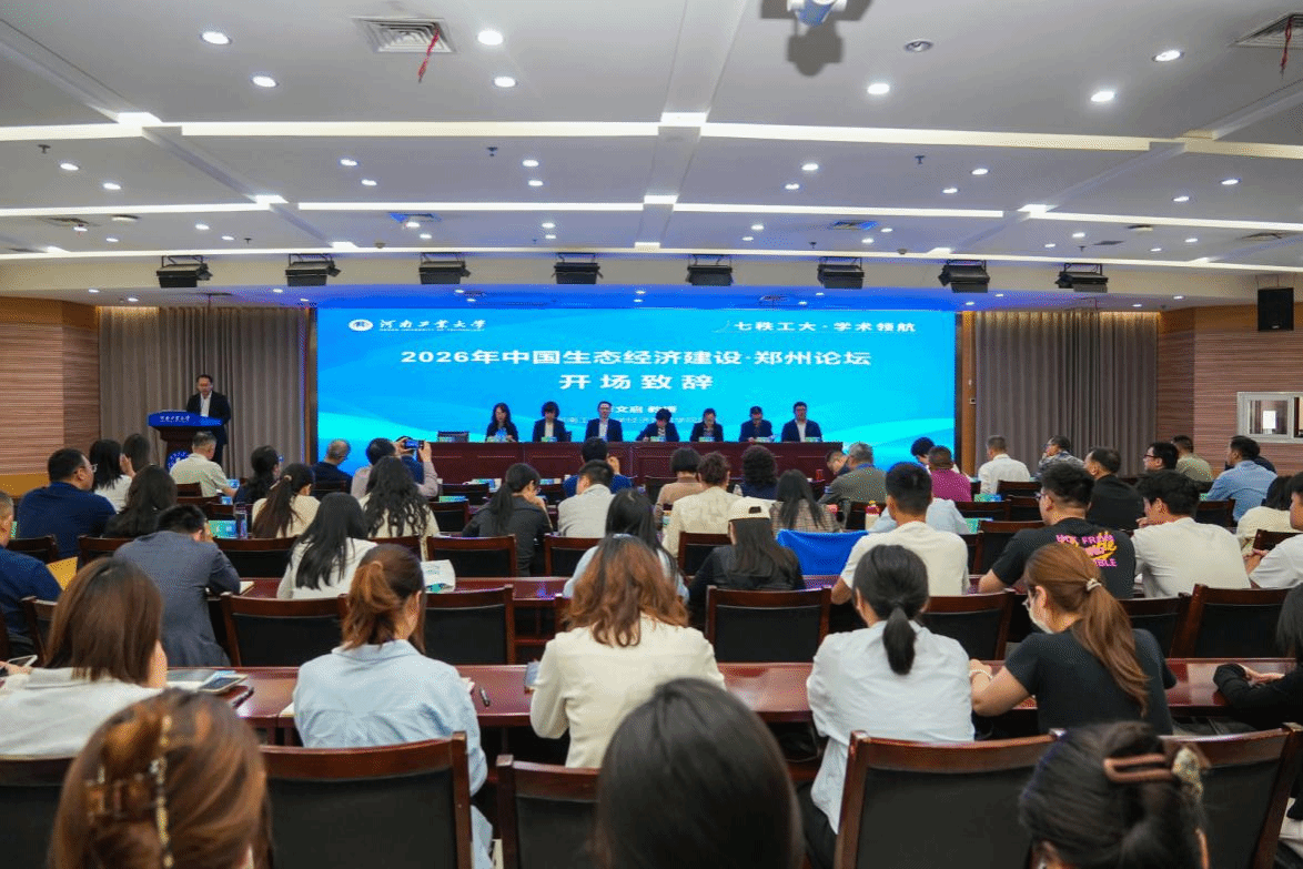 4月18日,由中国生态经济学学会生态经济教育专业委员会、河南工业大学主办,经济贸易学院承办的“2026中国生态经济建设·郑州论坛”在我校召开。校长吴智深,中国生态经济学学会生态经济教育专业委员会主任委员、湖北第二师范学院原党委书记杨鲜兰,副主任委员、鄂尔多斯应用技术学院副校长金良等出席会议。本次论坛吸引了来自华中师范大学、贵州大学、南京师范大学、宁夏大学、黑龙江省社科院等众多高校及科研院所的专家学者和研究生参加。开幕式由河南工业大学经济贸易学院院长李文启主持。